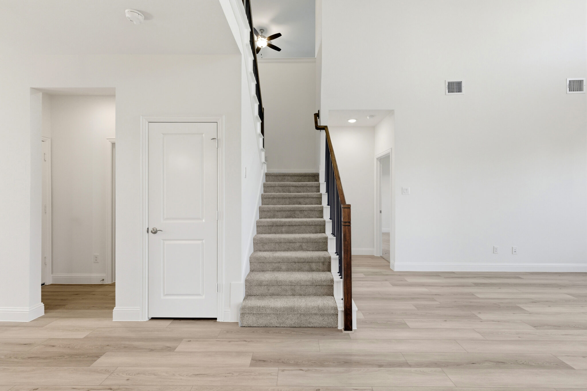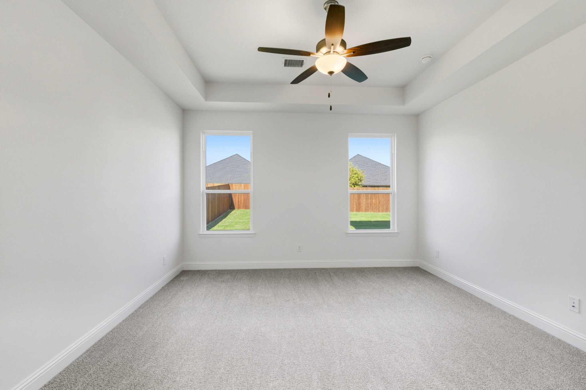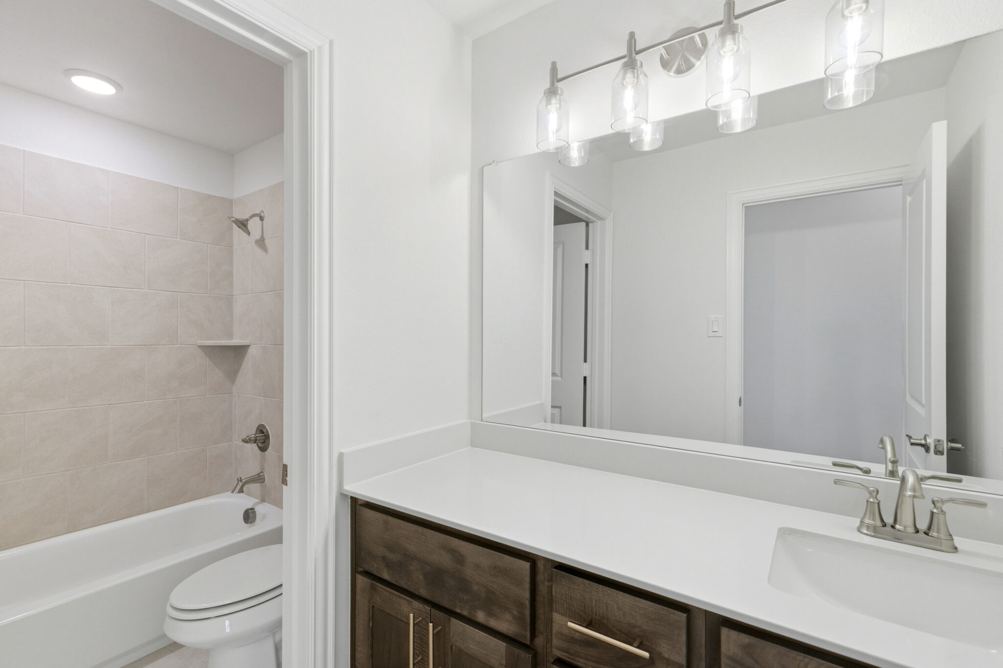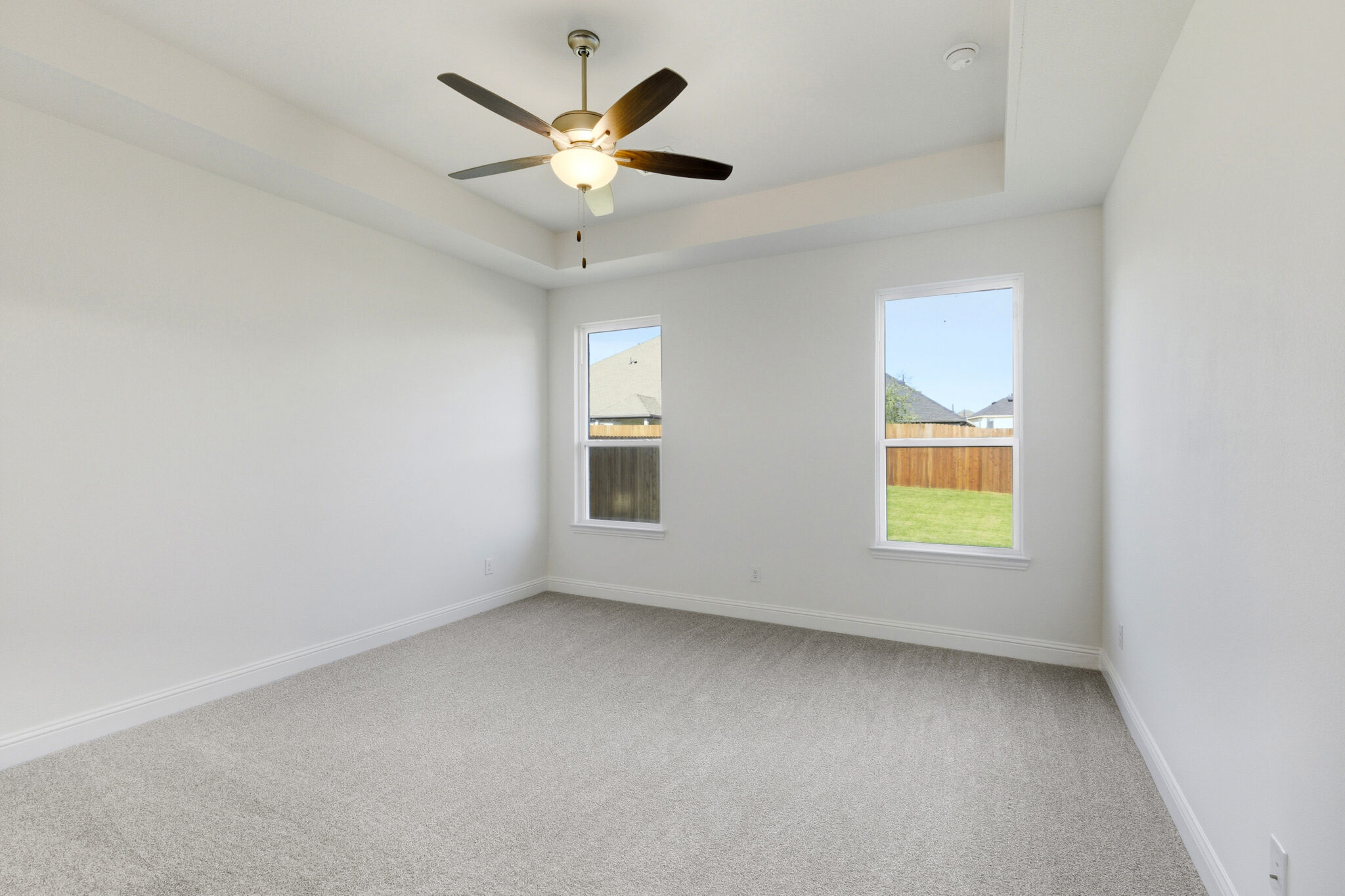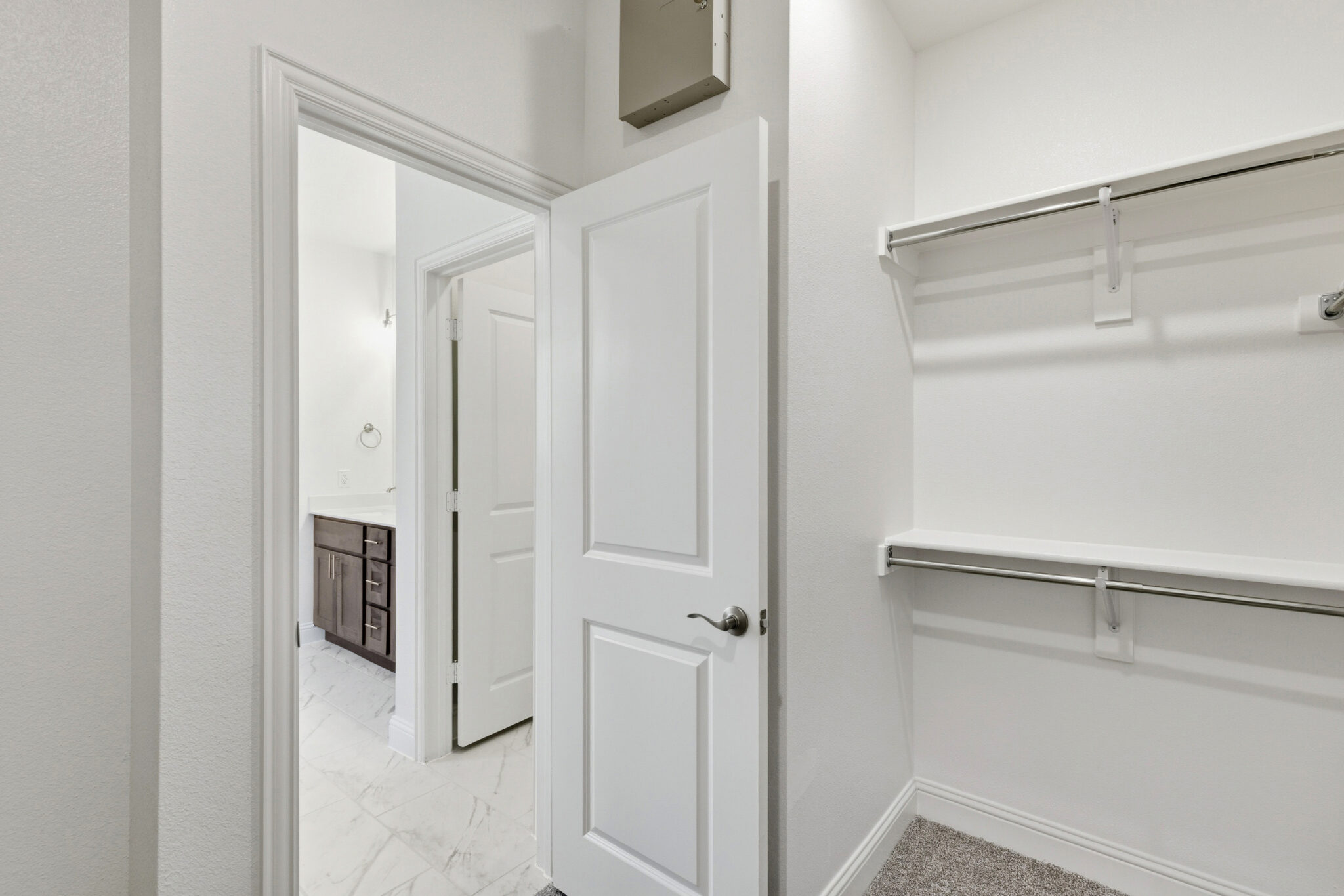 When you enter the Salado, you’re greeted by a large foyer adjacent to the open, two-story high family room and connected dining room, setting the stage for effortless entertaining. Plenty of windows in this home provide natural lighting throughout the open living spaces. The family room is adjacent to the sizeable kitchen, which features a large center island and walk-in pantry. A private study is conveniently located when you enter the house. The large soaker tub is an eye-catching fixture in the sumptuous primary bath, featuring his and hers vanities and an enormous walk-in closet – a perfect accompaniment to the spacious primary bedroom. The Salado also includes added bonuses like a large loft, walk-in closets in all secondary bedrooms and an additional full-size bathroom upstairs.