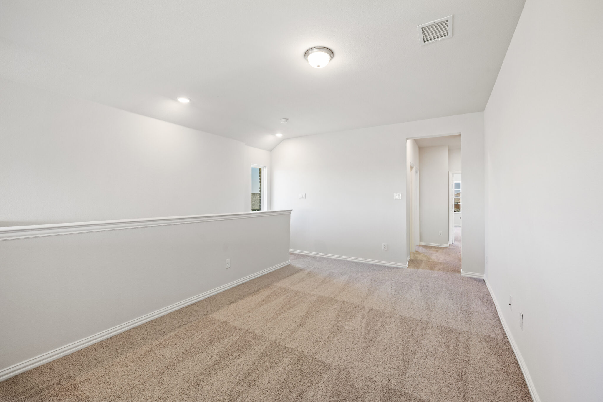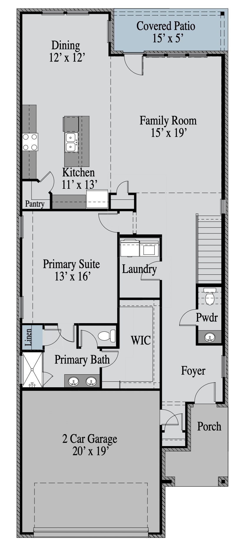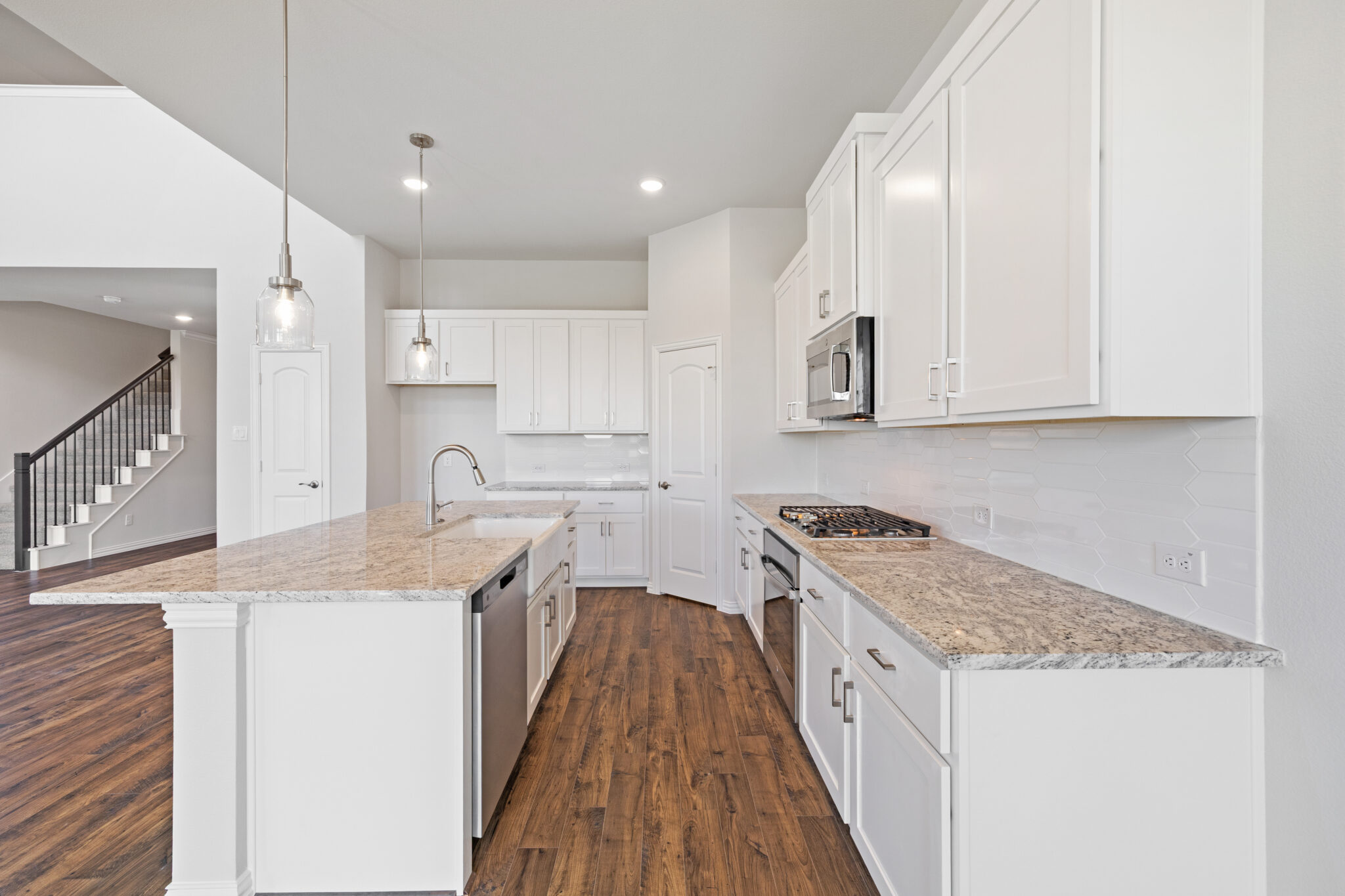 This two-story home offers a thoughtful design with both comfort and functionality in mind. The first floor features a spacious family room that flows seamlessly into the dining area and kitchen, complete with a walk-in pantry and convenient access to the laundry room. The primary suite is tucked away for privacy, with a large walk-in closet and a luxurious bath. A powder bath, foyer, and two-car garage complete the main level. Upstairs, you’ll find a generous loft overlooking the main living area, along with three additional bedrooms, two full bathrooms, and walk-in closets, providing plenty of space for family and guests. A covered patio extends the living space outdoors, making this home ideal for everyday living and entertaining.