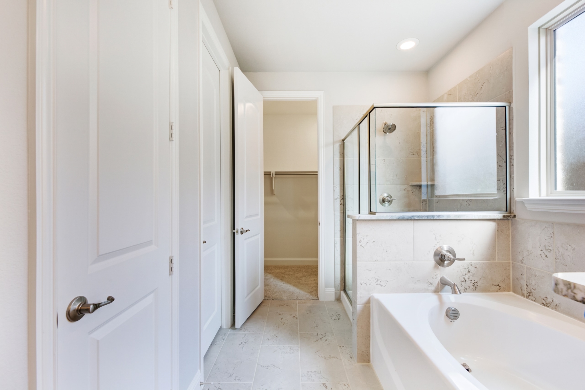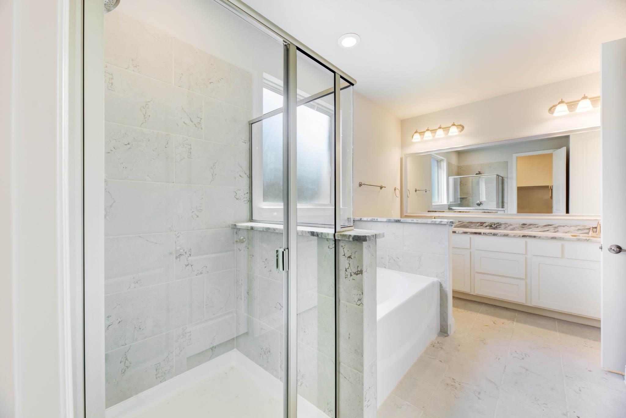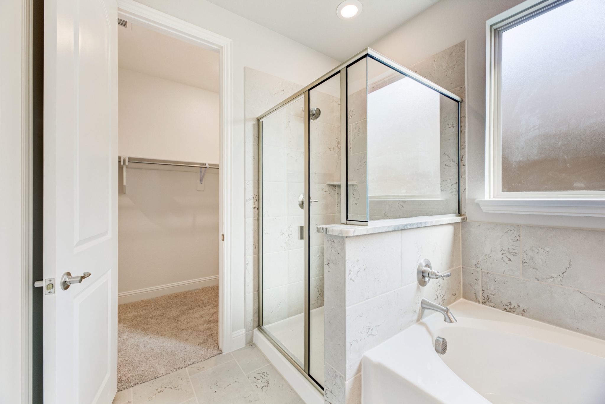 Enjoy a tub-sized walk-in super shower with natural light, premium tile walls, and a sleek, door-free design for a modern, spa-like experience.
