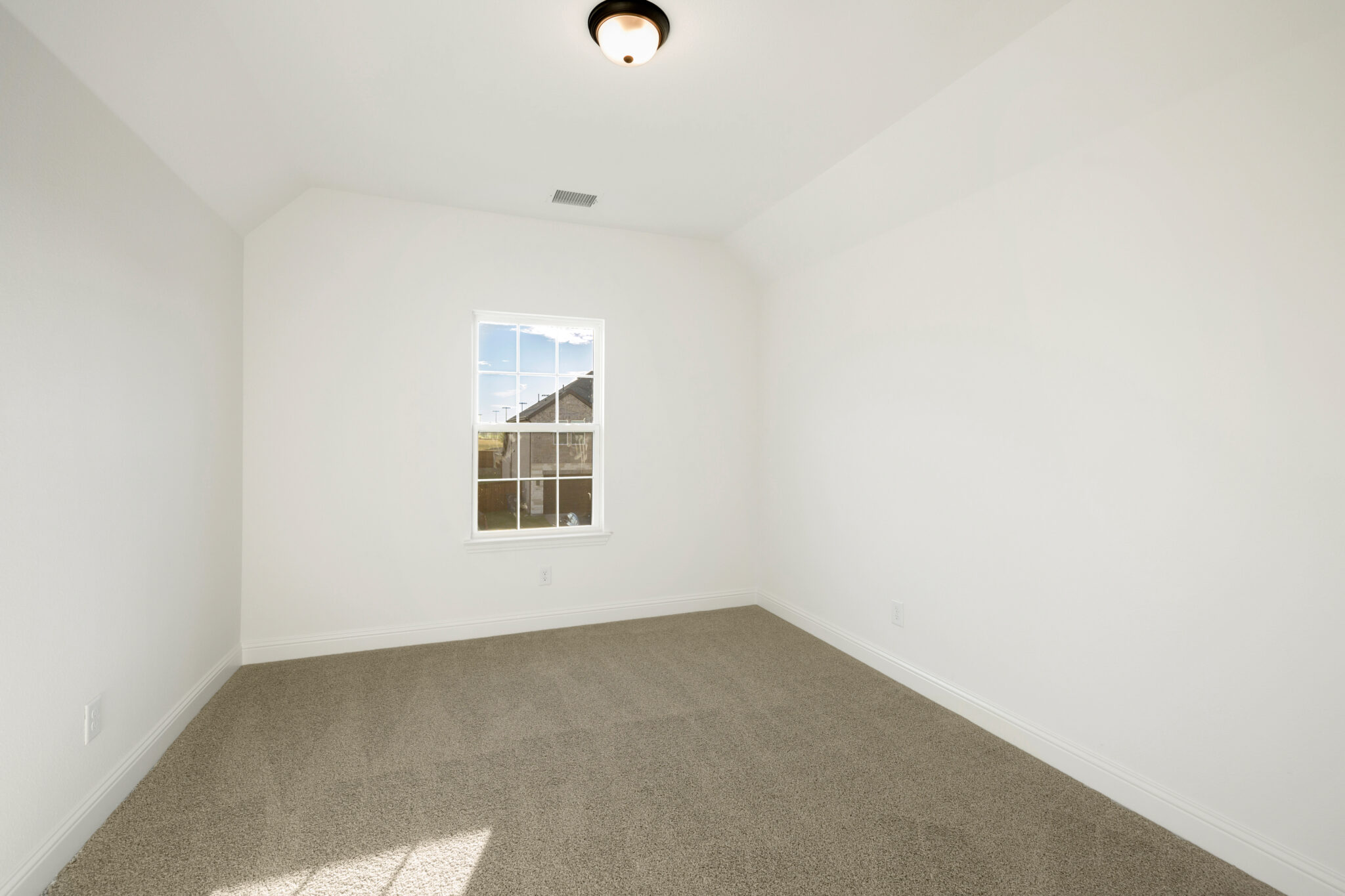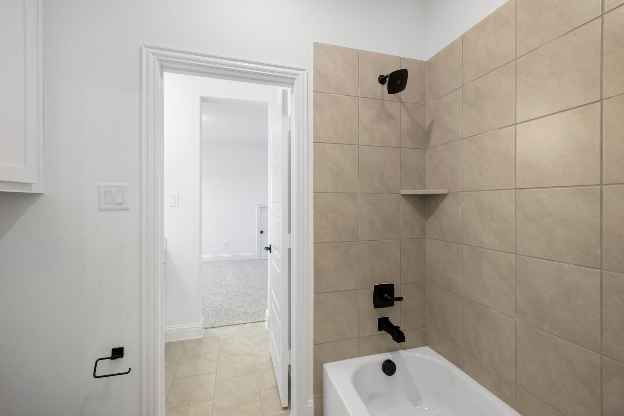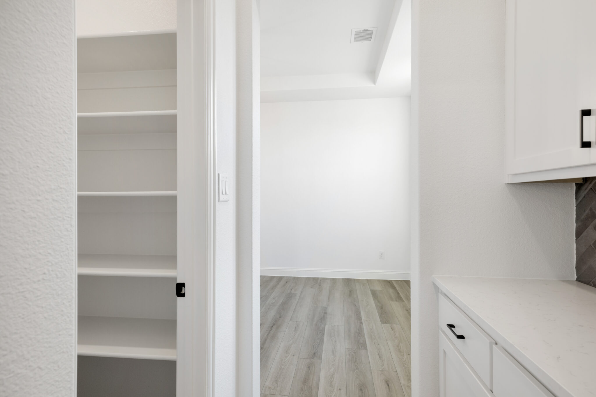 The design selections for 3015 Wallis Drive embrace modern elegance with neutral sophistication. Gray wood-look vinyl flooring pairs with textured gray carpet for a seamless flow. In the kitchen, a white countertop contrasts with a warm gray backsplash, creating a balanced and contemporary focal point. Painted white cabinets with striking dark hardware provide clean lines and depth. The primary bathroom highlights marbled finishes for a timeless aesthetic, while the secondary bathroom carries soft stone tones for continuity. The overall look is chic, polished, and designed for modern living.