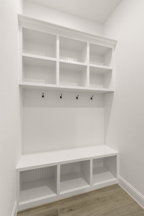 A smartly designed mudroom keeps the whole family organized for smoother mornings. Open storage and coat hooks offer quick access to everyday essentials, while dedicated cabinets reduce clutter. Built-in seating provides a convenient spot for shoes and adds bonus storage space.
