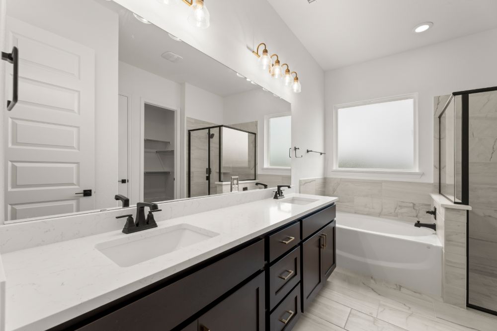 Enjoy a tub-sized walk-in super shower with natural light, premium tile walls, and a sleek, door-free design for a modern, spa-like experience.