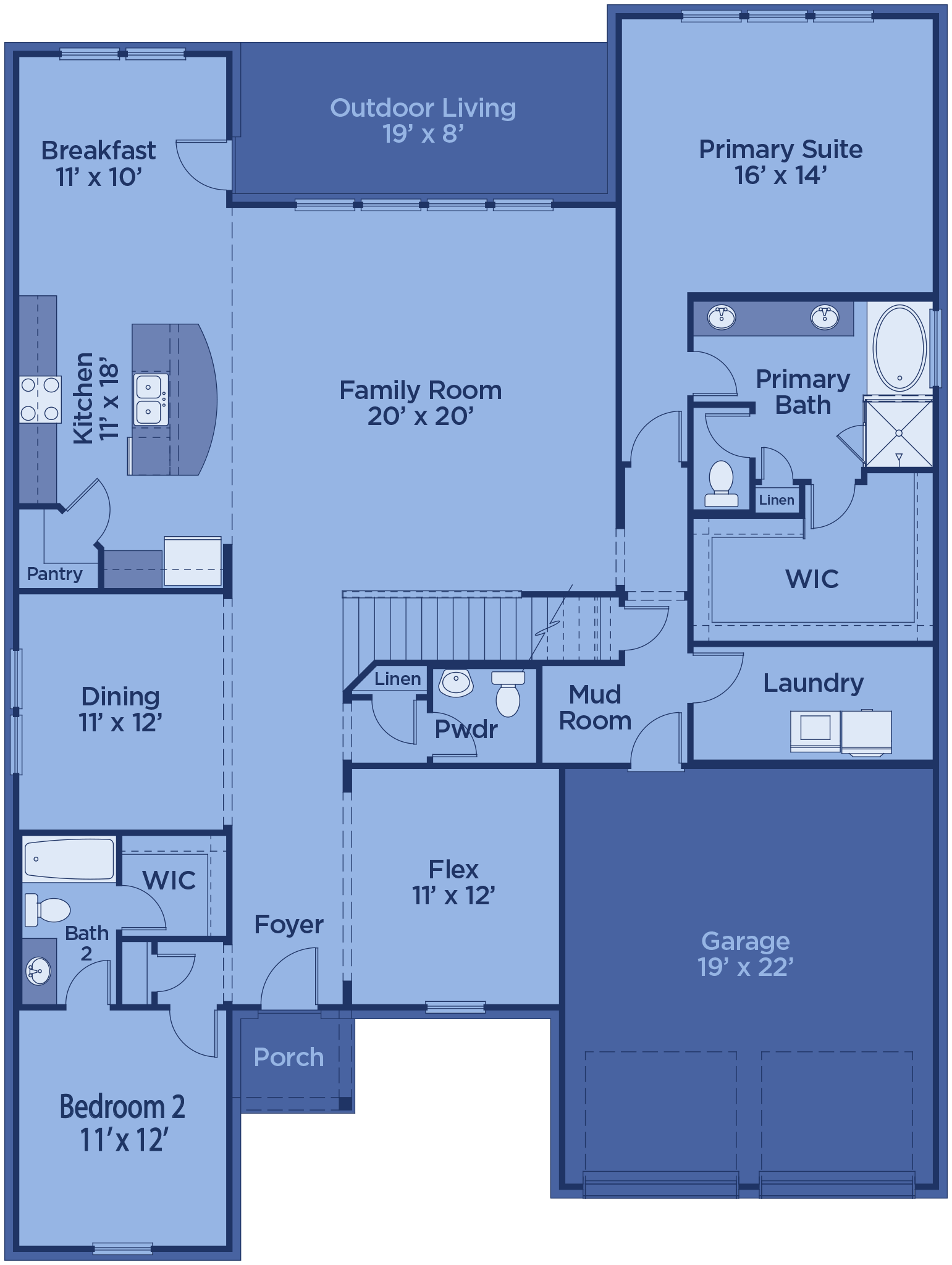 Make a bold first impression with a tray ceiling entryway, defined by clean 1’ recessed lines that elevate the space with height and grandeur—instantly making your home feel more open and welcoming.