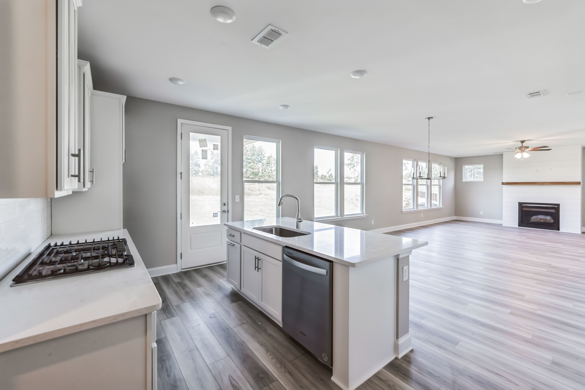 Whereas most new homes feature a microwave above the oven, our gourmet package creates a more sophisticated and versatile kitchen layout. The gourmet kitchen package is outfitted with professional grade stainless steel appliances and a 36" gas range cooktop with a lavish range hood above vented to the exterior.