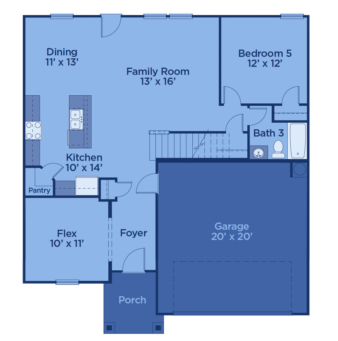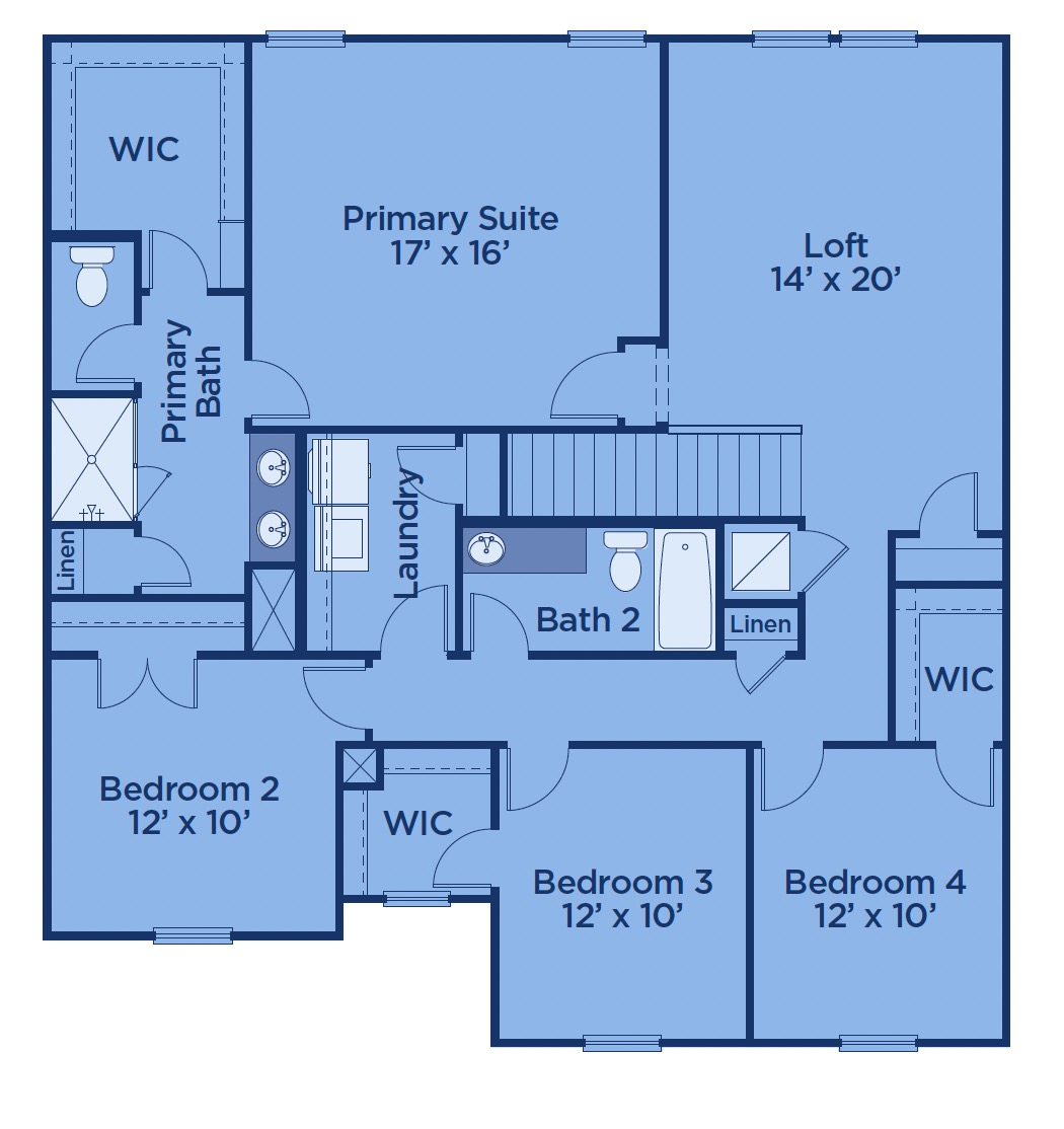 The Roswell floor plan features a smartly designed two-story layout with 5 bedrooms and 3 bathrooms, perfect for families seeking comfort, flexibility, and functionality. Upstairs, the spacious primary suite offers a large walk-in closet and a spa-inspired bathroom, creating a private and relaxing retreat. Four additional bedrooms are conveniently located nearby, each with ample storage and shared access to a full bathroom. The main level includes an open-concept living area that seamlessly connects the kitchen, dining, and family room—ideal for entertaining and everyday living. A flex space allowing you to use the space in a way that suits your lifestyle. Thoughtfully crafted for modern lifestyles, the Roswell combines open gathering spaces with private retreats, making it an excellent choice for growing households.