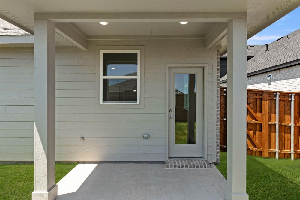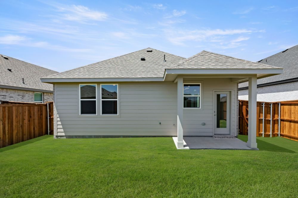 This single-story home offers a well-planned layout with an owner’s suite featuring a private bath and walk-in closet, located at the back of the house for privacy. The open-concept kitchen, dining, and family room create a seamless flow for both everyday living and entertaining, with access to a covered patio for outdoor enjoyment. Two secondary bedrooms share a full bath, while the laundry room is conveniently placed near the garage entry. With a welcoming foyer, covered porch, and two-car garage, this design blends comfort, efficiency, and style in a compact yet spacious plan.