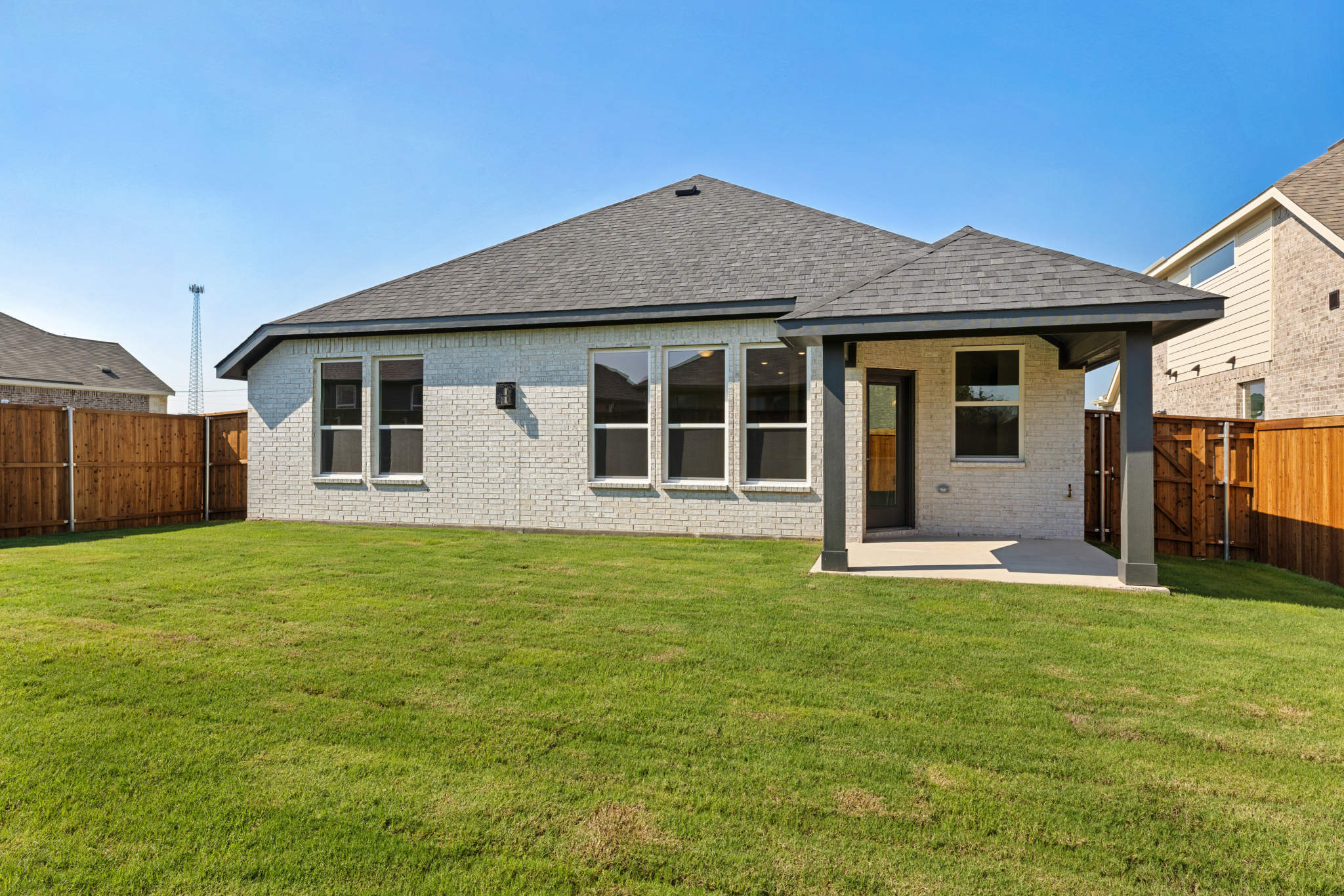 This single-story home features a thoughtful layout with a spacious owner’s suite complete with a private bath, dual sinks, and a walk-in closet, positioned at the back for privacy. The open-concept kitchen, dining, and family room create the heart of the home, with direct access to a covered patio for outdoor enjoyment. Three secondary bedrooms provide flexibility, with two sharing a full bath near the foyer and one located near the laundry room for added separation. A two-car garage, covered porch, and walk-in pantry add convenience, while the design balances comfort, practicality, and modern living.