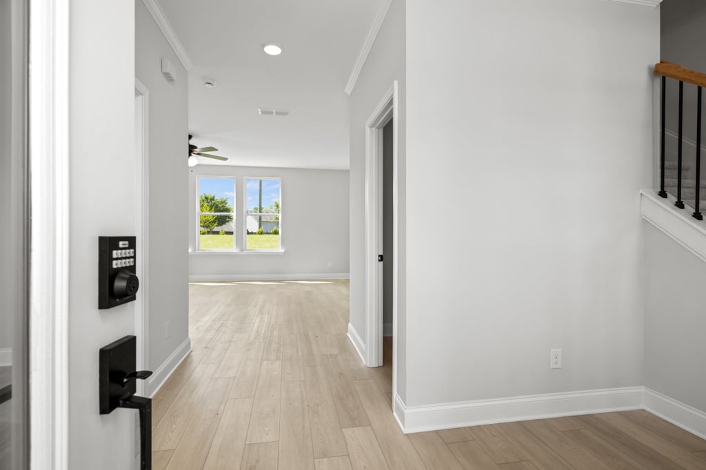Enhance your stairway with open railings featuring elegant wood balusters and spindles. This design creates an airy, upscale transition to the upper floor and blends effortlessly with open-concept layouts.