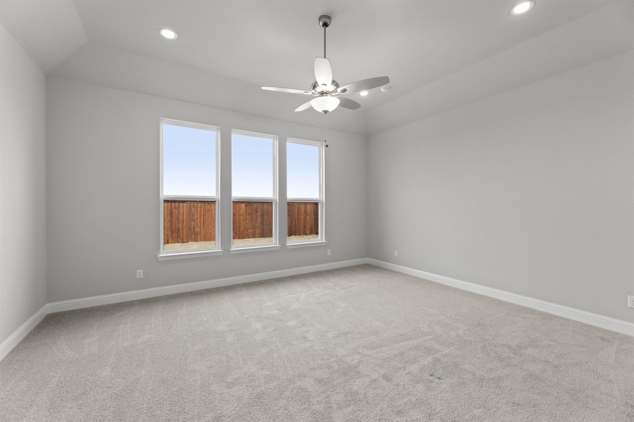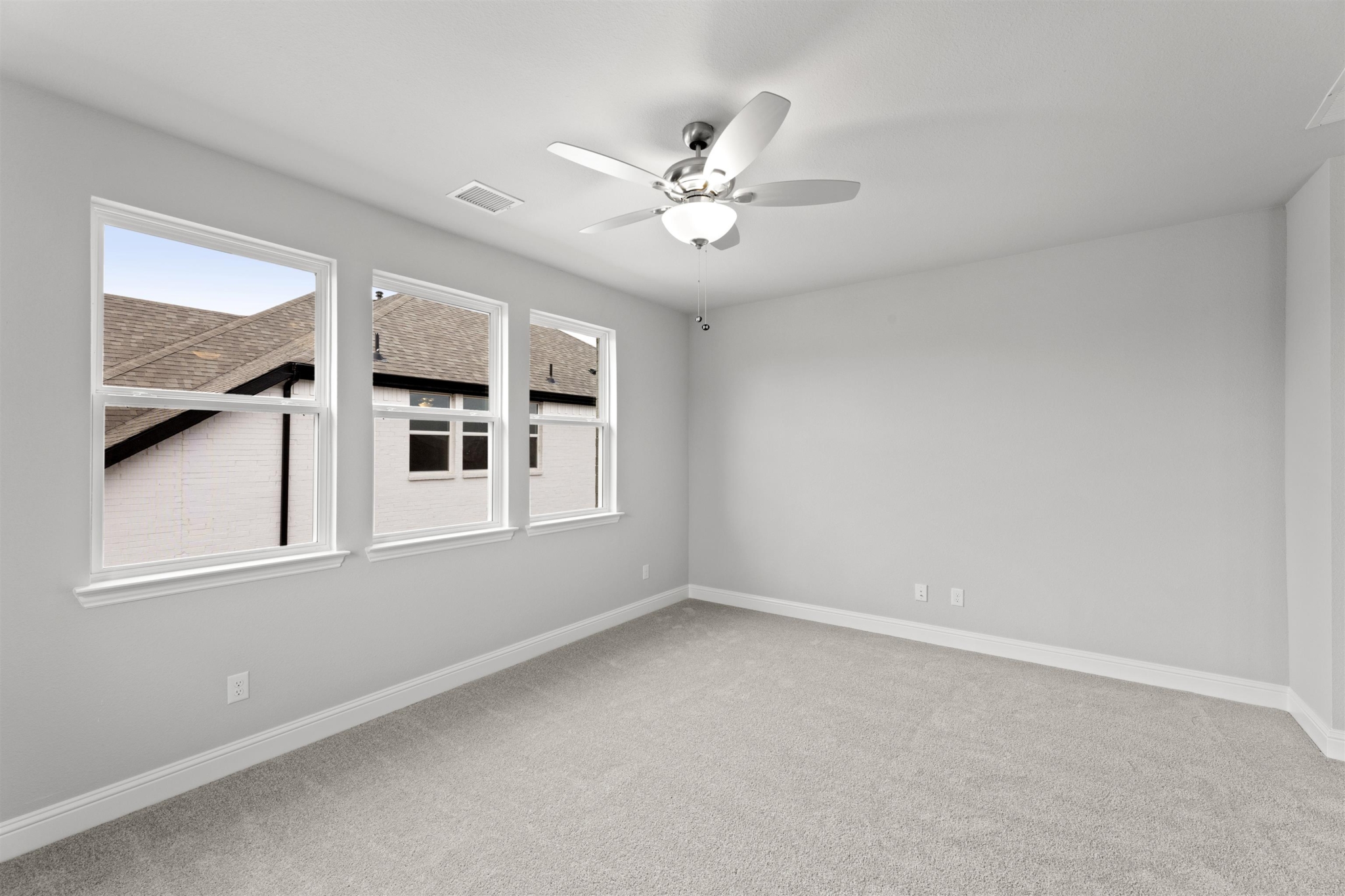 A private home office offers a comfortable, quiet space ideal for remote work. Glass French doors separate the study from the rest of the home—perfect for focus, calls, or deep work.