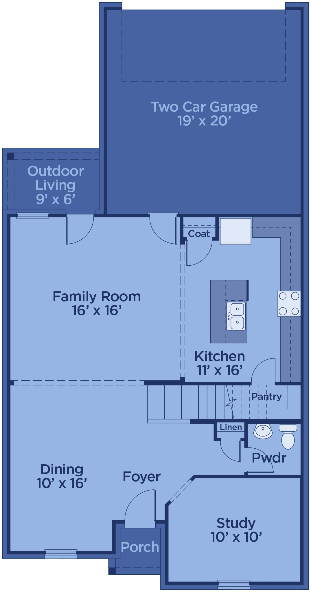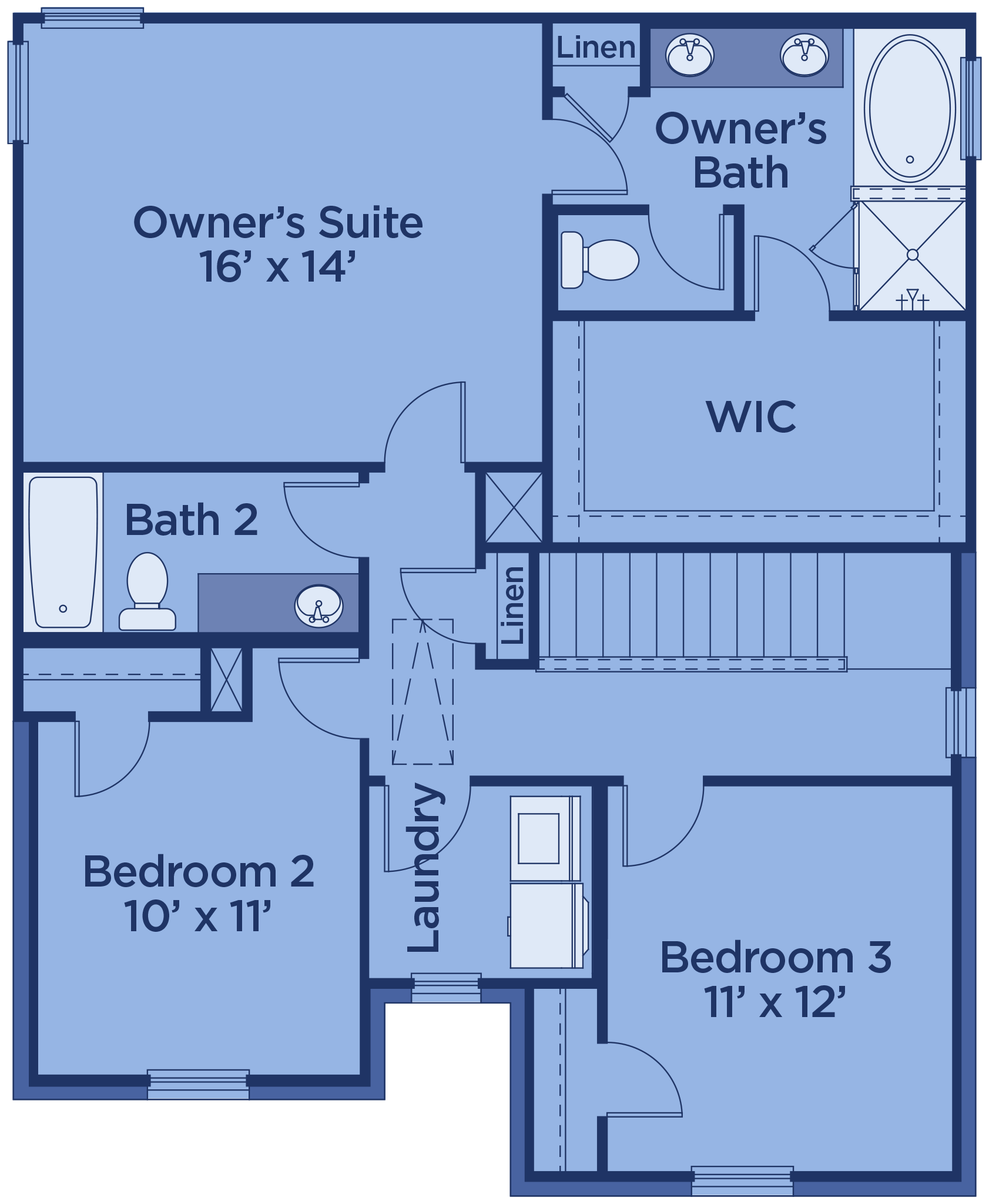 Most UnionMain Home Designs are easily customizable to include an additional one or two bedrooms. Each extra bedroom includes a walk-in closet and flexible sizing to meet your layout needs.