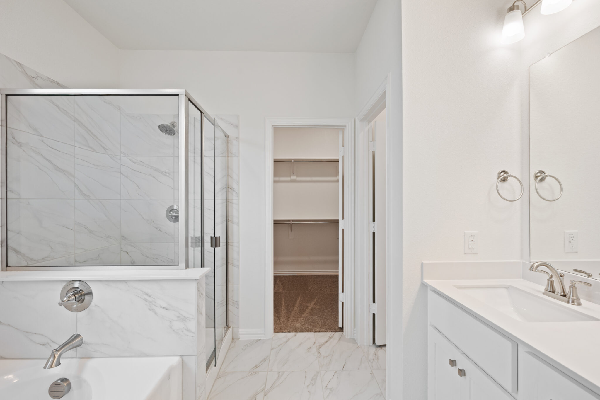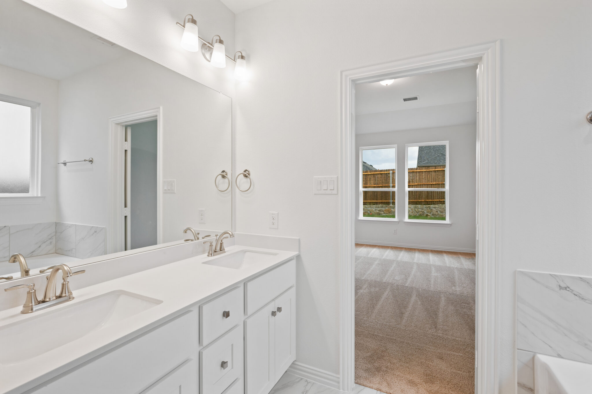This thoughtfully designed two-story home offers open gathering areas alongside private retreats. The main floor features a welcoming foyer that leads into a spacious family room, seamlessly connected to the dining area and kitchen with a large island and pantry. A covered patio provides outdoor living space, while the private primary suite includes a spa-like bath with dual vanities, a soaking tub, a separate shower, and a walk-in closet. A study offers the perfect spot for a home office, and a powder bath, mudroom, laundry room, and two-car garage add everyday convenience. Upstairs, three secondary bedrooms each include walk-in closets and have access to two full baths. A generous loft overlooking the family room below provides an additional versatile living area. Blending functionality and style, this home is ideal for modern family living and entertaining.