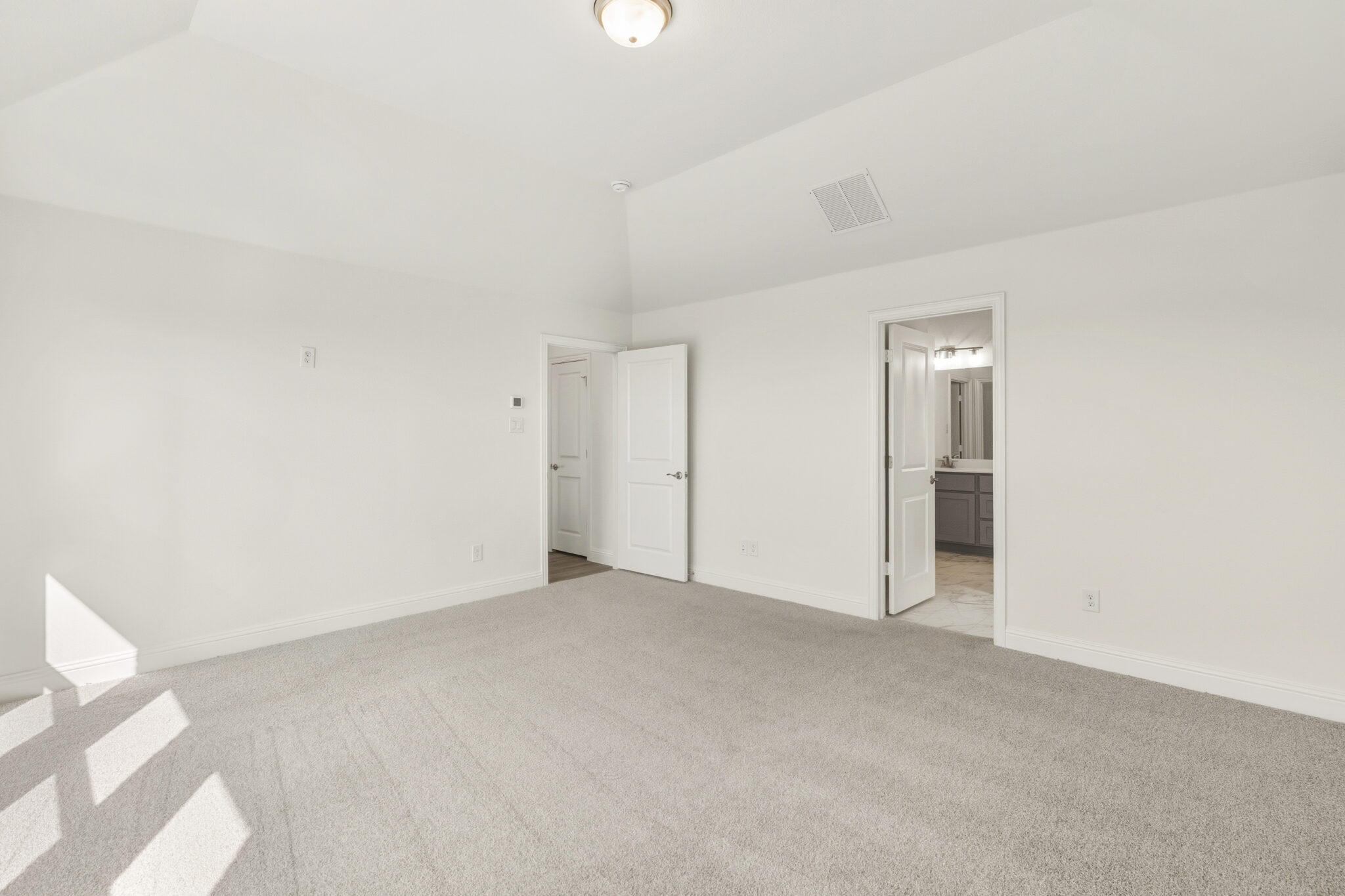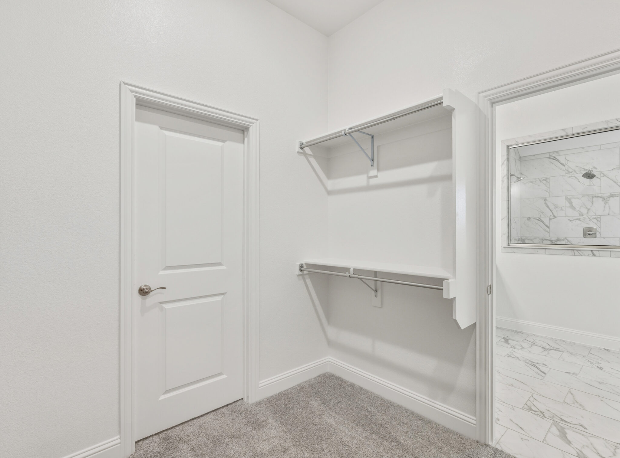 This single-story home offers a spacious and flexible design centered around a large primary suite with a private bath, walk-in closet, and an adjoining flex room, perfect for a sitting area, office, or nursery. The open-concept kitchen, dining, and family room create a seamless gathering space with direct access to outdoor living. Three secondary bedrooms are thoughtfully positioned: one at the front with its own walk-in closet and nearby bath, and two near the center of the home sharing another full bath. Practical features such as a laundry room, ample storage, and a two-car garage add convenience, while the outdoor living space extends functionality for entertaining or relaxation.