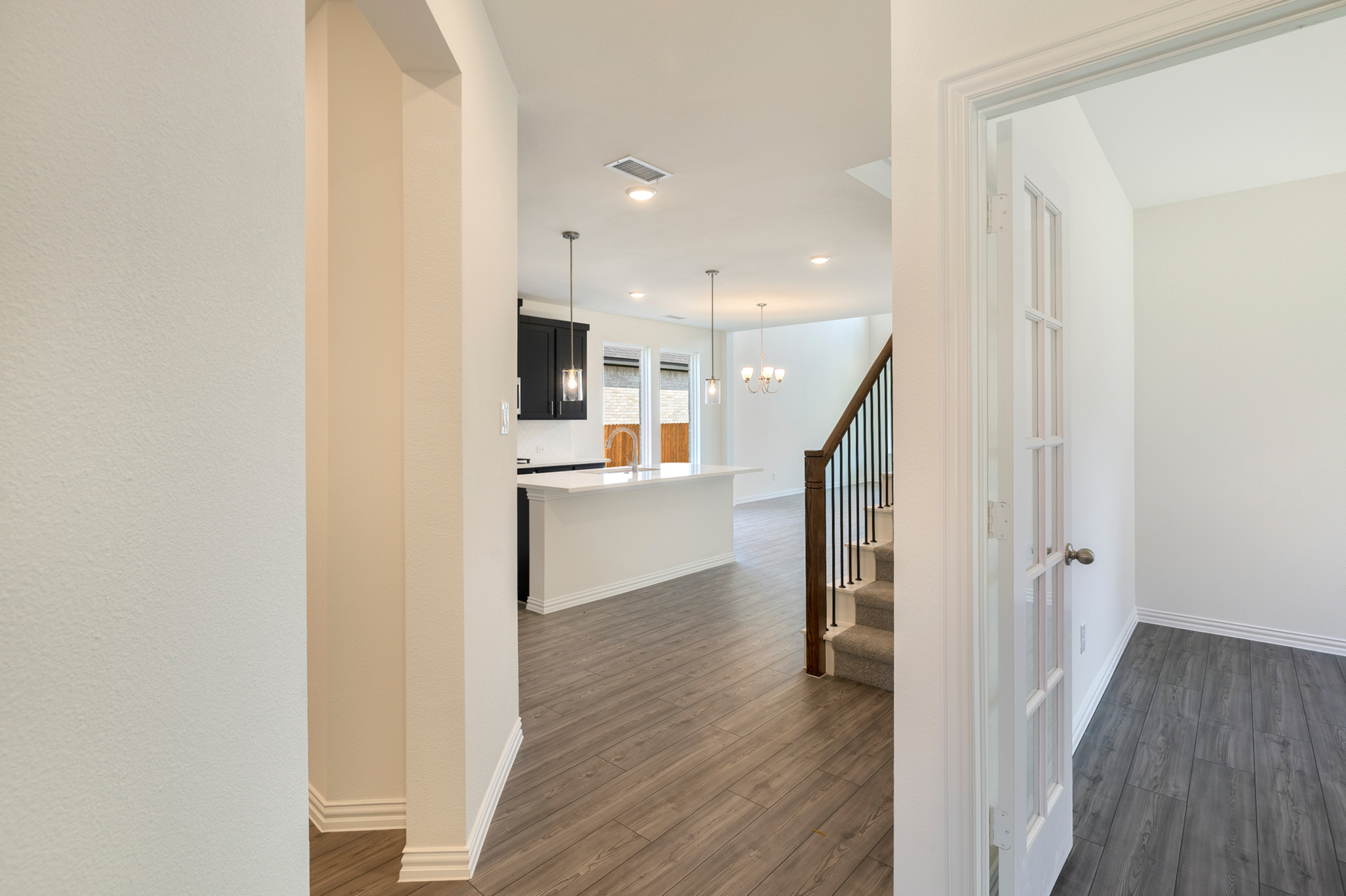 This two-story home is designed with comfort and functionality in mind, offering an open-concept layout that perfectly blends shared living spaces with private retreats. The main floor features a spacious family room that flows seamlessly into the dining area and modern kitchen, complete with a pantry and access to a covered patio, ideal for entertaining indoors and out. A private primary suite with a luxurious bath and walk-in closet is conveniently located on the first level, along with a study, laundry, and mudroom entry from the two-car garage. Upstairs, a generous loft provides additional living space and connects to three secondary bedrooms, each with walk-in closets, and a full bath with dual sinks. This home offers the perfect balance of style, function, and comfort for everyday living.