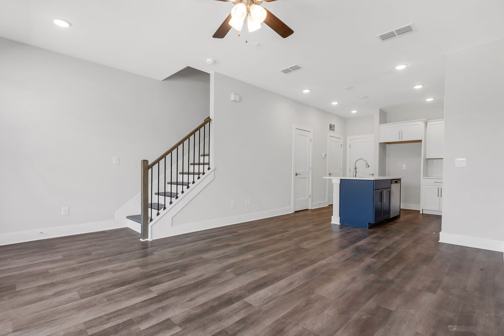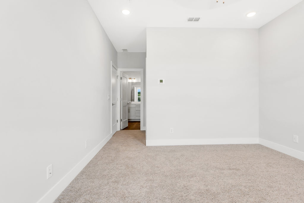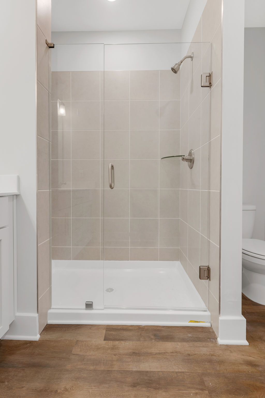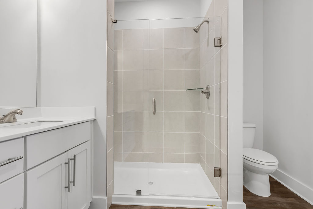 The Burton plan is a two story contemporary condominium with a layout both practical and well-suited for entertaining. Upon entry, you’re met with a sophisticated open-concept first floor living area which features a seamless flow from living room to dining room and kitchen. Garage entry is connected to the kitchen in the back of the space with a convenient powder room as well. Downstairs is the perfect space for lifestyle and entertaining, while the second floor provides privacy for the secondary bedroom and the beautiful primary suite. Highlights include a decadent primary bathroom with his and hers sinks and a spacious walk-in closet and laundry located just across the hall.